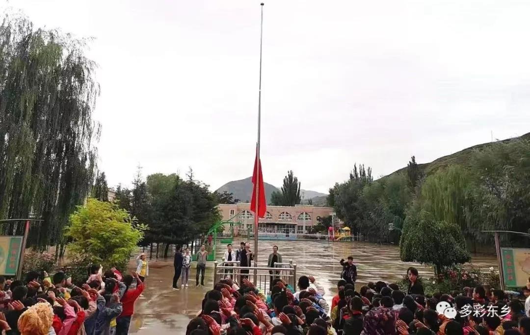 在东乡县第三中学,记者看到,校园卫生干净整洁,秋雨把几棵树木洗刷的吐翠。操场上,已经报名注册的学生们穿着整齐的校服,神情肃穆,在河滩镇负责人、学校班子成员及老师的带领下,奏唱国歌,举行新学期的第一次升旗仪式,行注目礼中,放飞了他们的“中国梦”。